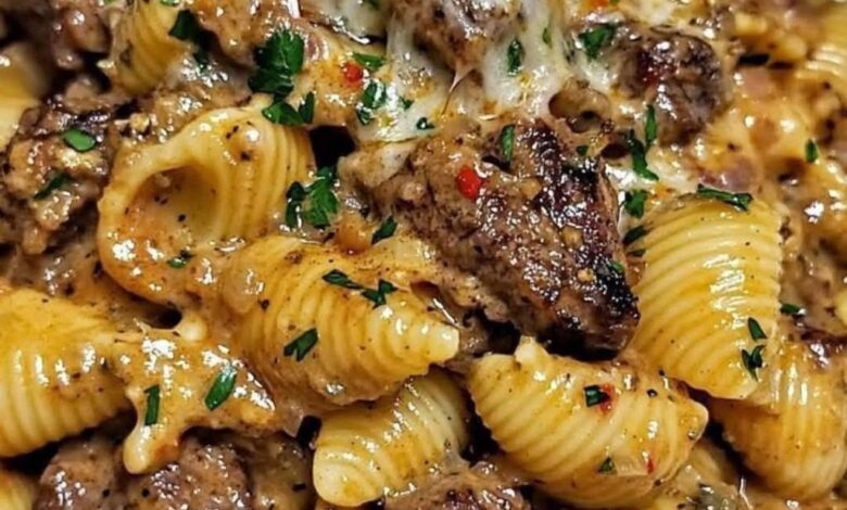 Vous rêvez d’un repas qui impressionne sans vous compliquer la vie? Ces bouchées de steak au beurre à l’ail accompagnées de coquilles crémeuses au parmesan transformeront votre dîner ordinaire en véritable festin. Ce plat gourmand marie la tendreté du steak saisi à la perfection avec l’onctuosité irrésistible de pâtes nappées d’une sauce au parmesan.